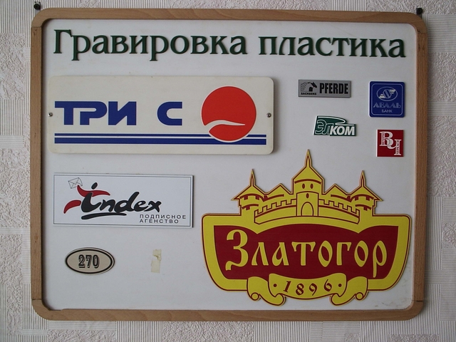 - для рекламных фирм - изготовление бейджей, бирок, настольных табличек, вывесок (дверных, фасадных), указателей (внутренних, наружных), объемных букв и символов, сувениров, подставок, гардеробных номерков, жетонов;